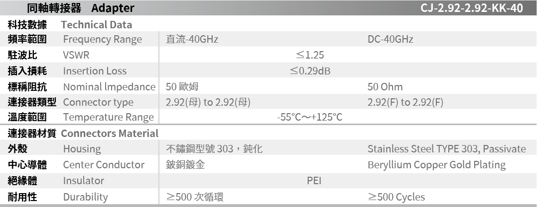 CJ-2.92-2.92-KK-40 Adapter