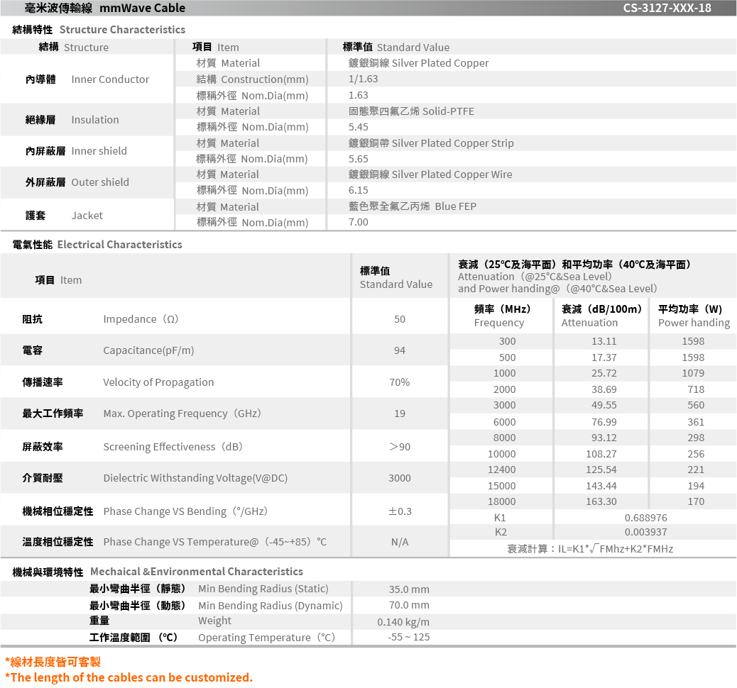 CS-3127-XXX-18 mmWave Cable
