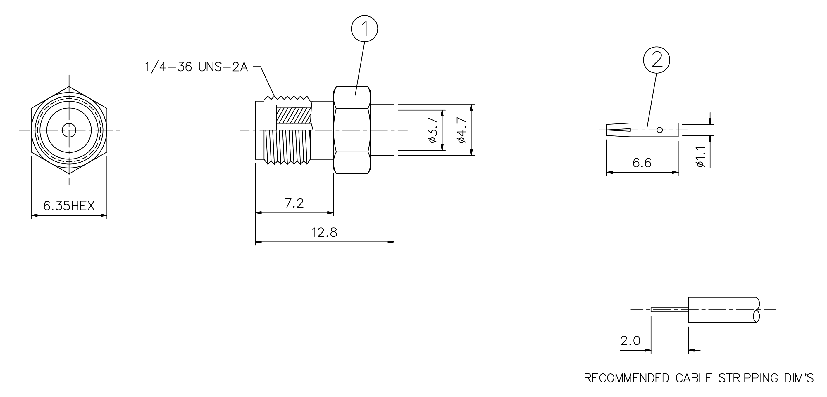 SMA(F) Straight Solder Type For Semi-rigid / flex.141 Cable Adapter