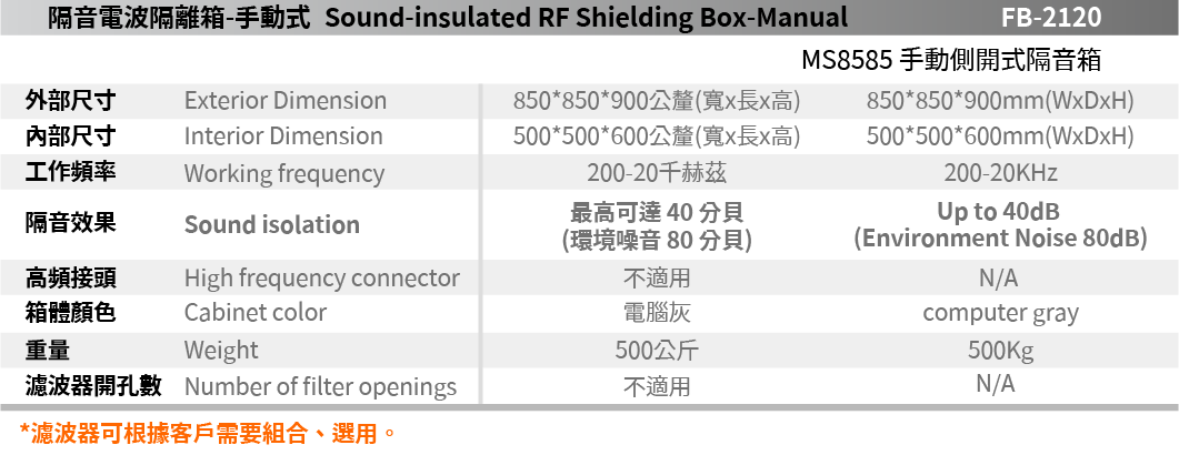 FB-2120 Sound-insulated Manual side opening RF Shielding Box