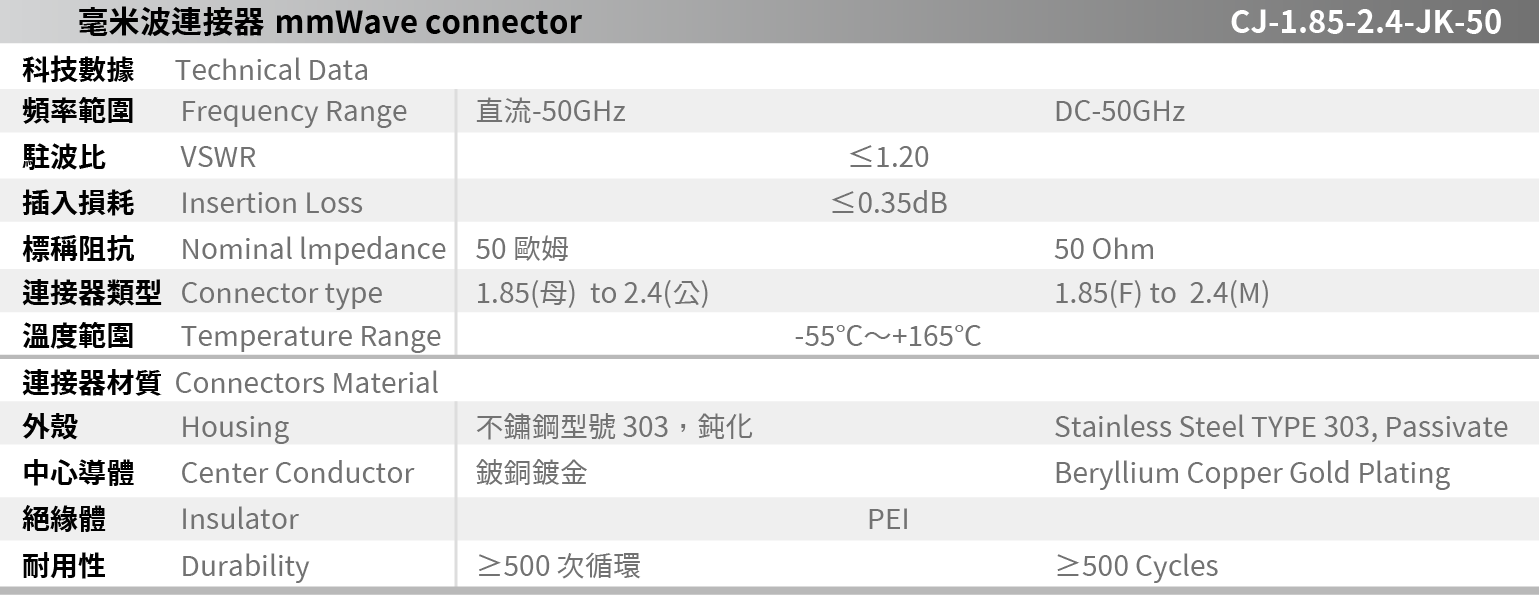 CJ-1.85-2.4-JK-50 mmWave connector