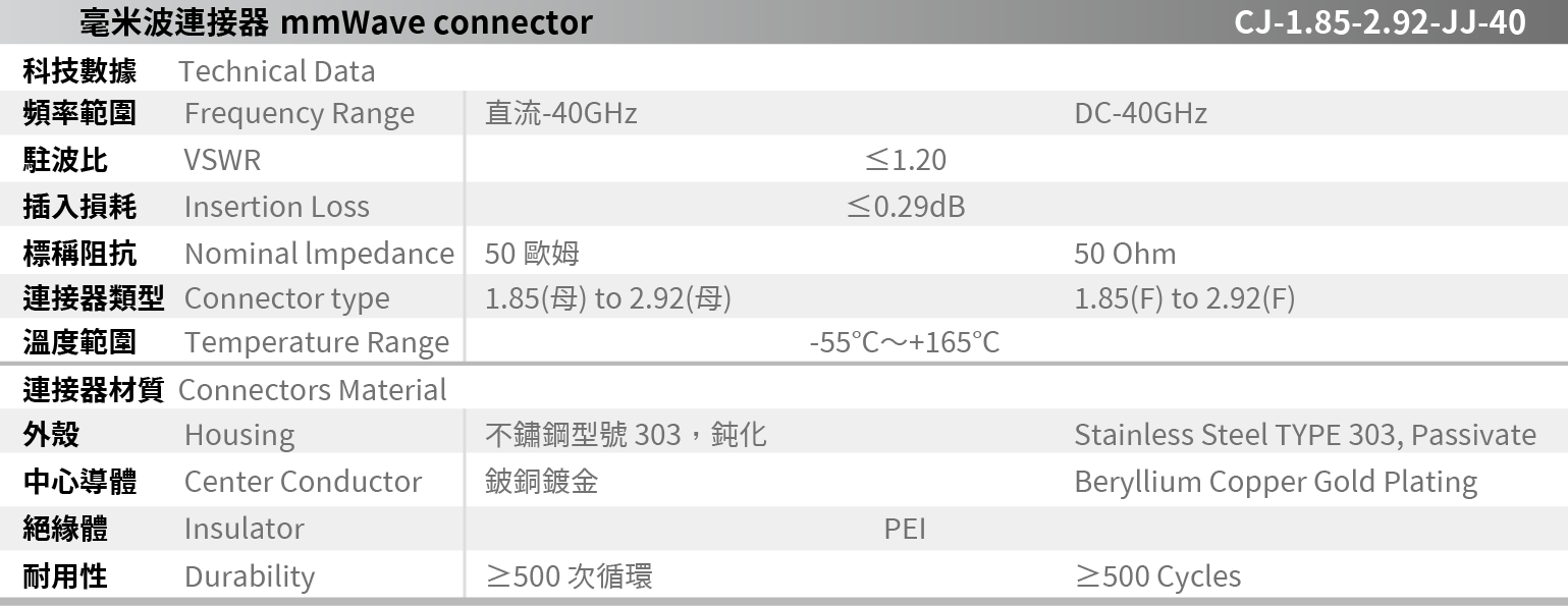 CJ-1.85-2.92-JJ-40 mmWave connector