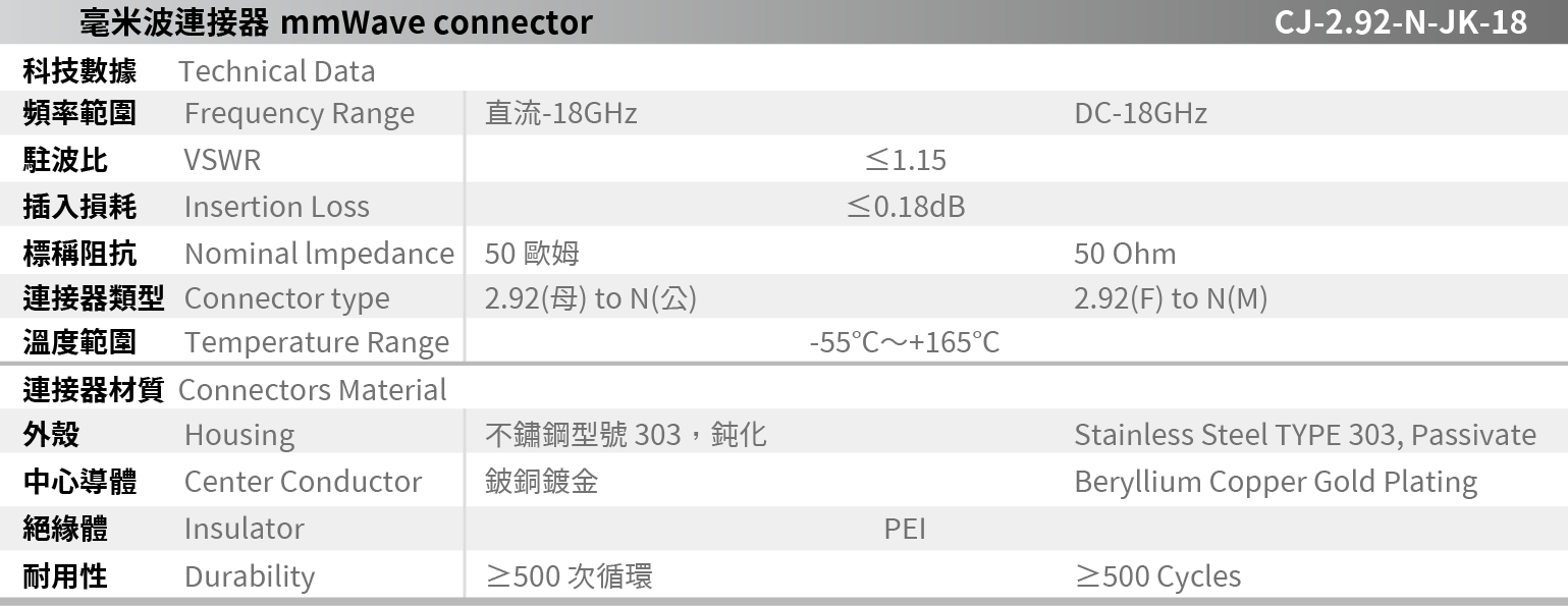 CJ-2.92-N-JK-18 mmWave connector