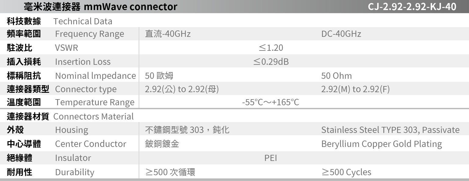 CJ-2.92-2.92-KJ-40 mmWave connector