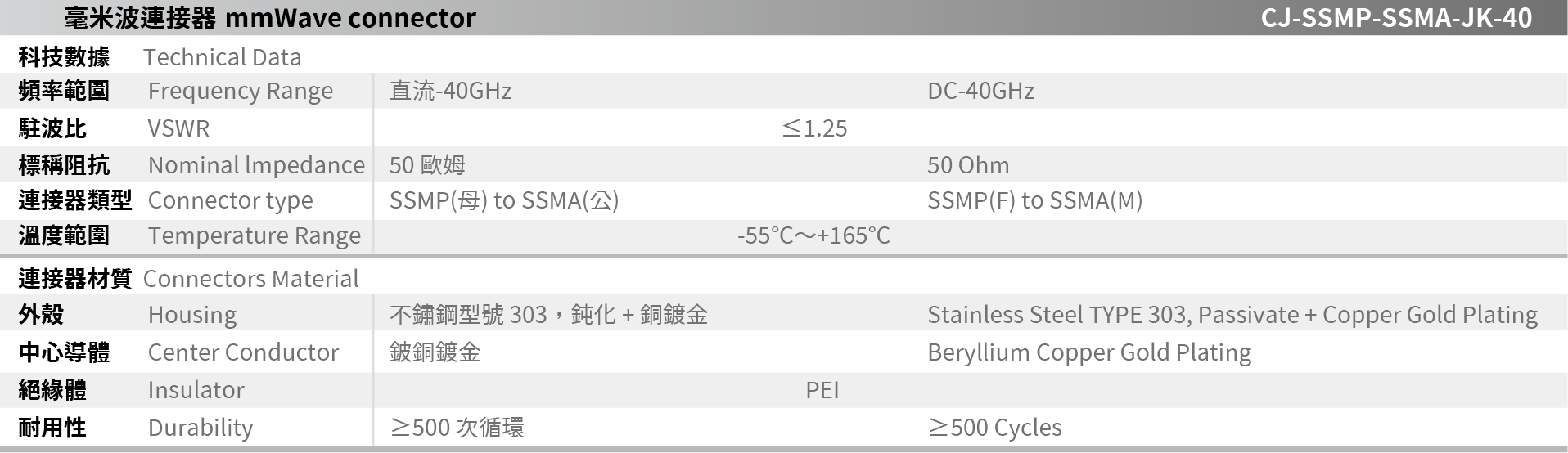 CJ-SSMP-SSMA-JK-40 mmWave connector