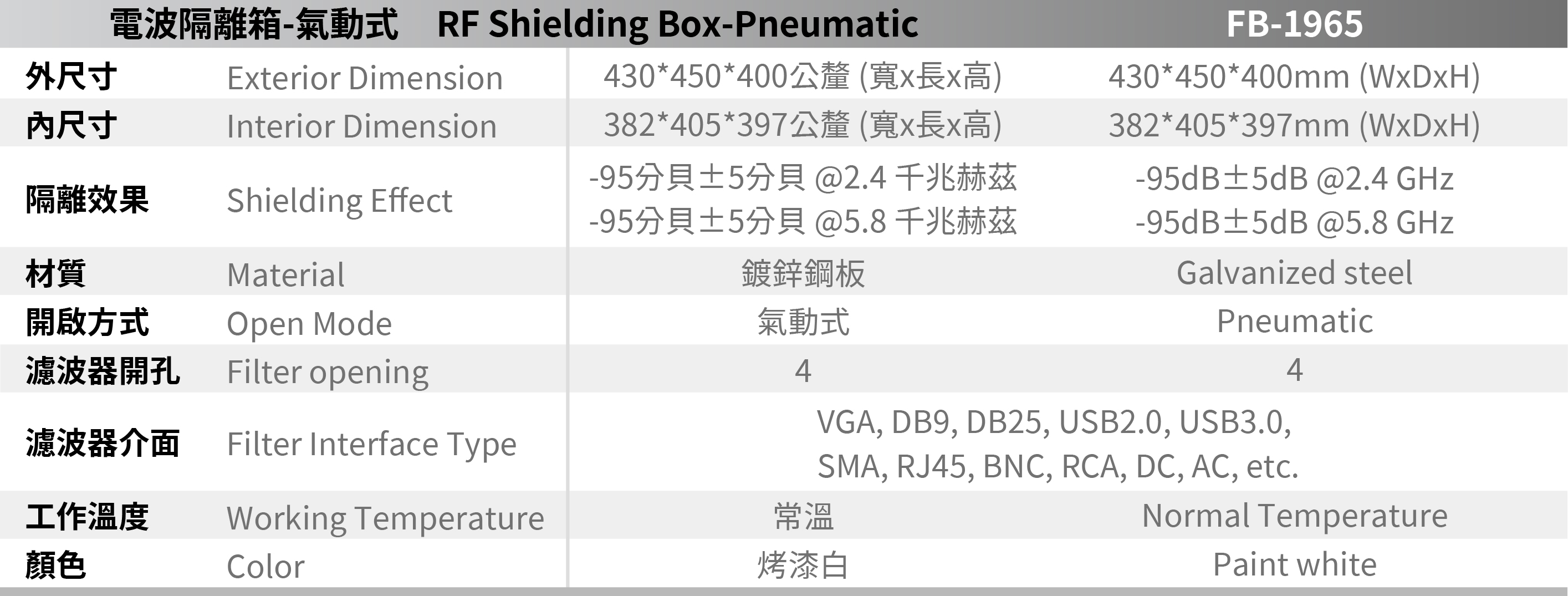 FB-1965 Pneumatically open Shielding Box